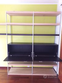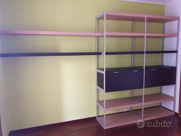 Vendo bellissima e moderna libreria per studio o cameretta in wengè e rovere sbiancato di nobile fattura con profili in alluminio satinato misura 185 x 45 cm e altezza 227. Tenuta benissimo pari al nuovo. Possibilità di mensole abbinate di 175 x 31 cm. Il tavolo e la cassettiera sono escluse. Prezzo di acquisto 2.500 Euro. Vendo per inutilizzo visto che ho cambiato casa e non ci sta più.
