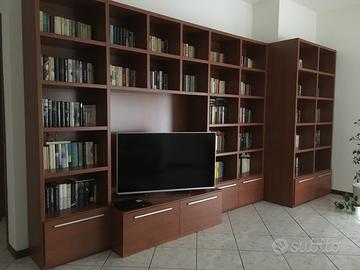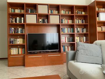 Libreria color ciliegio Larghezza totale é di cm 445 Altezza cm 233 Profondità cm 36 Vano porta tv Profondità cm 60 Larghezza cm 132 Altezza cm 111