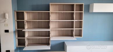 Vendo libreria a parete / mobile contenitivo, marca Zalf. L'arredo bicolore (struttura finitura legno, poro aperto, venature in rilievo, ante bianche, laccato opaco), dispone di ante a ribalta con meccanismo di apertura push/pull. Misure in foto. Disponibile subito, già smontata, trasporto a carico dell'acquirente (solo ritiro a mano su Varedo, MB). NO SPEDIZIONE