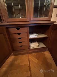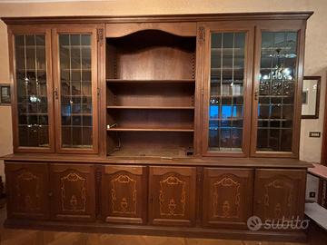 Libreria in legno massello, ante a vetro, con cassetti in stile classico. Elegante, adatta per soggiorno o studio professionale. Ottime condizioni. Misure 350x55 h 250. Sita in Torino, ritiro a carico dell’acquirenfe.