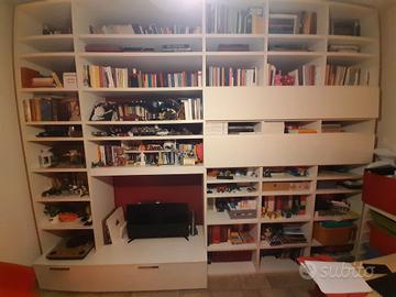 bellissima, resistente e capiente. misure nell'ultima foto, libreria bianca opaca + lucida con spazio per tv e mobiletti chiusi.