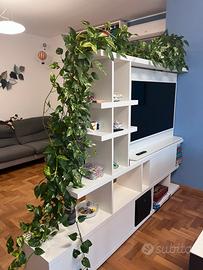 Libreria Mobile TV in legno laccato bianco double face (la parte tv gira a 180 gradi) per dividere in due ambienti e creare separazione tra gli spazi. Sistema brevettato con cavi invisibli. Ante scorrevoli alla base . Condizioni perfette. Lungo 235 cm Alto 170 cm Profondo 40. Prezzo nuovo 4,200 euro. Poiché é in legno (no laminato/truciolato) puó essere facilmente adattato a dimensioni diverse.
