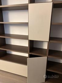 Composizione di piu livelli con 3 ante apribili con sistema push-pull, di cui una con pistoni di rallentamento.