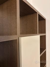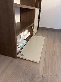 Color wengè chiaro, con ante apribili con sistema push-pull, color tortora.