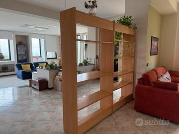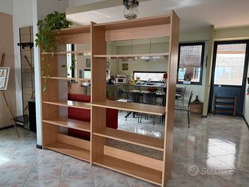 Bellissima libreria a giorno, in ottimo stato, tenuta benissimo e di ottima qualità. Colore rovere, utilizzata per separare ambienti, con un ripiano più largo degli altri, molto utile come base d’appoggio.