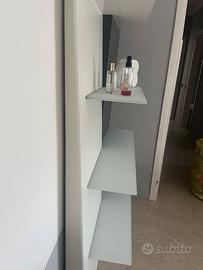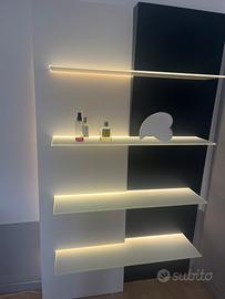 Linbreria di design , bicolore , grigio piombo e bianco , con ripiani in vetro