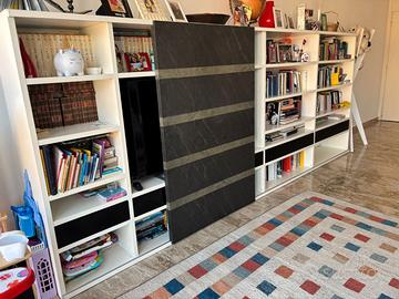 Vendo elegante libreria/parete attrezzata Pescarollo, moderna e funzionale, ideale per soggiorno o studio. * Lunghezza 407 cm, altezza 173 cm * Struttura bianca con elementi a giorno * Anta scorrevole centrale (102 cm) effetto pietra * Vani contenitivi e cassetti * Spazio TV integrato La libreria offre grande capacità contenitiva ed è perfetta per libri, oggetti e decorazioni. L’anta scorrevole permette di coprire la TV o parte della libreria, creando diverse soluzioni estetiche. Condizioni buone, con normali segni d’uso. I libri non sono inclusi. 💰 Prezzo: 900 € 📍 Ritiro a mano Milano Zona Piazza Napoli (necessario smontaggio)