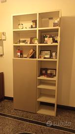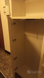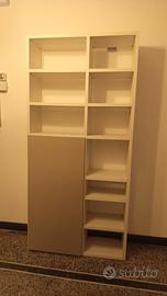 Mobile libreria alto cm 228, largo cm 110, profondo cm 34,8. Struttura bianca con venature legno, anta con appendiabiti