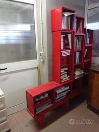 libreria modernariato composta da cubi componibili in legno epoca anni 70 colore rosso misure in foto