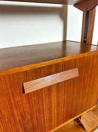 Libreria modulare Cielo/Terra a una campate anni 60 -Made in Italy- La Libreria è di manifattura Italiana, realizzata in legno massello con impiallacciatura Teack,4 mensole,1 modulo con anta a ribalta e divisori interni,2 montanti in Teack e metallo con puntali superiori estensibili, tutti gli elementi sono regolabili a piacimento. Completamente restaurata e in condizioni perfette . Misure; Altezza minima cm 272/massima 335-Profondità cm 40-Larghezza totale cm 82