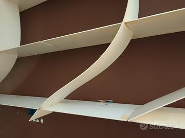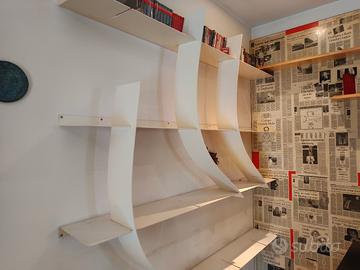 Libreria di design componibile a fantasia. 8 ripiani orizzontali (4 da 2.5m e 4 da 2m) e 6 separatori. Ottima condizione.