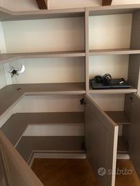 Ampia e versatile libreria modulare, in legno di alta qualità e tenuta in condizioni eccellenti, praticamente priva di segni d'usura. Per info contattami