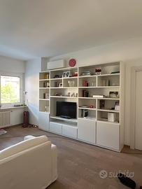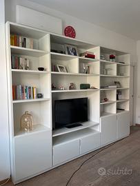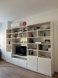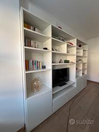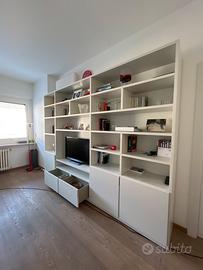 Libreria Molteni Design, laccata bianca in legno massello originale. Lunghezza cm 320, altezza cm 230, profondità cm 44. Con schienale, finitura satinata opaca, ottime condizioni, molto robusta. PEZZO UNICO