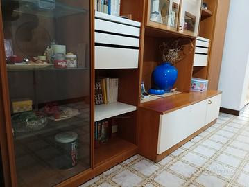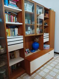 Libreria molteni in legno di noce, con vetrina completa di mensole in cristallo e faretti, cassetti porta oggetti e vano portaoggetti adibito anche a porta televisore.
