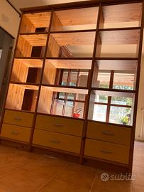 Libreria a giorno in legno massello con 6 cassetti rifiniti in color pesca