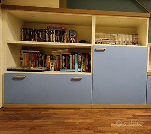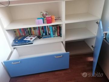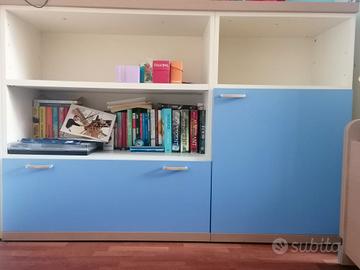complemento cameretta doimo city line usato ma in perfette condizioni libreria L60 1 anta e vano, libreria L90 con 1 cestone e 2 vani colore grace e avio
