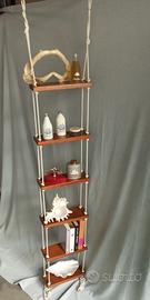 Libreria scaletta nautica, da appendere a parete o al soffitto, ht. cm. 170 più cime alla base, piani di cm. 31x11,5 non rifiniti sul retro, articolo nuovo, lievi imperfezioni come da foto. Gli oggetti da presentazione esposti, non sono compresi nel prezzo.