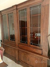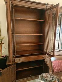 libreria vetrina in legno di noce con ante in vetro e ripiani interni. Larghezza 2.50, alta 2.34, profonda 50cm