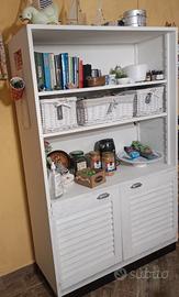 libreria bianca con due ripiani aperti e un mobiletto chiuso con ante a persiana nella parte inferiore..... misure 1,77 altezza ... 115 larghezza .... 40 profondità ..