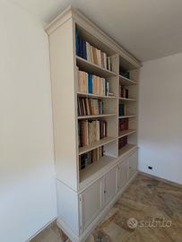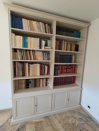 Libreria in massello, laccata avorio, ripiani rimovibili. L.204xP.46xH256
