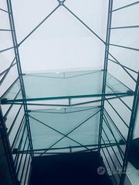 Struttura/libreria di design in acciaio nero con due ripiani in cristallo 1 cm. in ottimo stato. Misure 2,10 x 65 x 54. Consegna a mano.