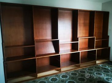 Libreria no legno massiccio misure 430 X 240 X 50 ca. 5 cassetti inferiori 3 sportelli Base e top unico pezzo smontata causa inutilizzo presenta qualche graffietto da utilizzo