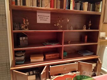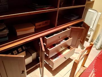 libreria in massello, fatta su misura da un falegname, composta da tre elementi. Misure: 2 metri di lunghezza; 2,70 di altezza; 0,40cm di profondità. Ha due faretti a led installati in cima ( come si vede in foto). Tre cassetti e due sportelli. Molto, ma molto pesante. Prezzo poco trattabile.