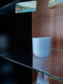 Composizione: Sistema modulare a spalla portante (moduli da circa 50 cm). Ampio vano centrale vetrina e moduli laterali chiusi/aperti.