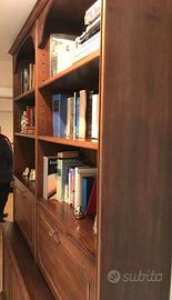 Splendida libreria in legno, con ripiano ribaltabile (a scrittoio) e piccola cassettiera, vendo causa trasloco. Da ritirare in loco