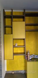 Vendo libreria pensile componibile in legno laccato color SUGHERO scuro opaco con due ante apertura push&pull in legno laccato color KIWI opaco. Ripiani riposizionabili a piacere.