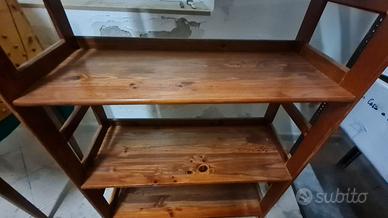 Simpatica libreria in legno con 5 ripiani, ognuno dei quali ha un piccolo bordino di contenimento. Ideale per la camera dei ragazzi o piccolo studiolo. Misure: larghezza 84cm, altezza 167cm e profondità 35cm. Usata ma come nuova.