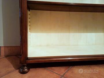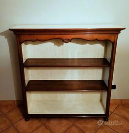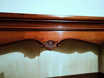 In vendita una stupenda libreria stile provenzale, creata dalle mani esperte della nota casa italiana di Bassano del Grappa, FABER MOBILI. E' color noce anticato la cui finitura è visibile nello specifico in una foto ripresa a breve distanza. La libreria che è anche piattaia, ha due ripiani regolabili in altezza e l'interno è color crema anticato. Misura 146 cm di larghezza (misura riferita alla parte alta della cornice), 43 cm di profondità (misura riferita alla parte alta della cornice), 143 cm di altezza senza i piedini (mentre da terra è 151 cm.). E' in OTTIME condizioni.