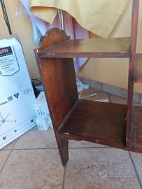 libreria bassa e stretta a 3 piani diversi in lunghezza di legno scuro