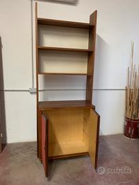 Libreria a giorno realizzata artigianalmente negli anni '70. Con 2 sportelli e 2 cassetti interni. Restaurata e in buone condizioni. Valutabile progetto di restauro/restyling Possibilità di consegna a domicilio compresa entro 15km.