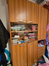 Regalo libreria 150 x 220 cm di altezza color ciliegio. Con ante (di cui 2 in vetro) e 3 cassetti.