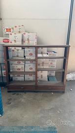 libreria in legno 4 piani e 2 cassetti 150x30x200 circa (altezza, larghezza, lunghezza) PEZZO MOLTO BUONO E STABILE PREZZO TRATTABILE