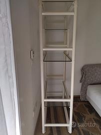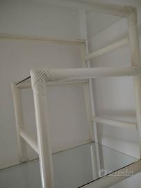 articolo in legno laccato color avorio con ripiani in vetro