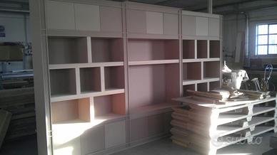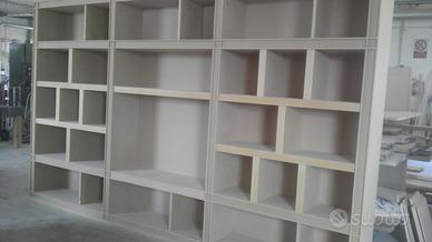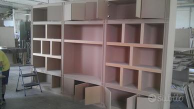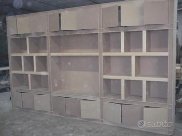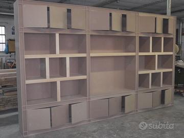 Magnifica libreria in MDF e legno di abete all'interno della struttura per avere una controbilanciatura perfetta del fianco, unione tramite perni e bussole nascosti tramite copriforo in plastica e guide nascoste in nylon. Gli schienali saranno sempre in MDF da 10 autoportante. I fianchi (struttura) con pendenti sono con spessore 8 cm con gravetto sporgente di 1 cm e ripiani orizzontali lisci dritti spessore 4 cm, completamente smontabile con 18 ante con apertura push-up della BLUM. possiamo costruirla su misura a richiesta con varie soluzioni tipo cassettiera interna o altro, il prezzo si intende franco fabbrica iva non comprendente ma completo di finitura laccata bianca rall 9010 opaco ma se se si vuole si può laccarla diversamente dato che la libreria è da costruire da zero, da li si può modificare con le misure e con finiture da calcolare a parte. Le misure sono lunghezza 392 altezza 236 profondità 40 abbiamo anche la possibilità di fare qualsiasi articolo da Voi richiesto con progettazione in 3d. libreria è già stata costruita su commissione e venduta non teniamo magazzino ma essendo i diretti falegnami produttori possiamo costruirla in base alle proprie esigenze caratteristiche e misure. DIRETTAMENTE DAL PRODUTTORE. ASTENERSI RIVENDITORI E COMMERCIANTI