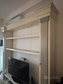 Libreria dí antiquariato con due scaffali e colonne con ante