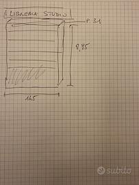 Libreria fatta in falegnameria in legno stratificato laccato color grigio, comprende un cassettone nascosto nella parte bassa che in fotografia non si vede. Apertura dal primo ripiano in basso. Vedere scheda per misure. Ritiro presso Tor Vergata.