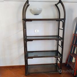 Vendesi libreria in rattan con ripiani di vetro. Misure 170x90x35. Zona ritiro Piazza Fiume a Roma