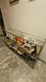 libreria stile anni 70 in metallo e vetro L 159 cm H 85cm P 39cm