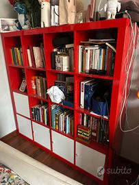 libreria rossa con accessori , ha un piccolo forellino nella parte superiore