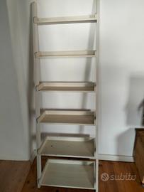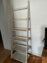 Libreria Scaffale tipo scala con 6 ripiani in legno massiccio di mango da appoggio a parete, per esposizione piante, oggetti, libri, molto robusta , larghezza scala cm 65, altezza cm 190, ( inclinata è più bassa) altezza fra gli scaffali 31 cm, i ripiani si restringono progressivamente dal basso verso l'alto: ripiano in basso nr 1 profondità 35 cm, nr.2 31 cm, nr.3 26 cm, nr.4 21 cm , nr.5 16 cm , nr. 6 11 cm ( appoggiata al muro è inclinata quindi profondità attorno ai 50 cm misurati sul ripiano in basso )molto decorativa e originale, adattabile a vari stili di arredamento shabby, country , industriale, moderno...per questioni di dimensioni solo consegna a mano regione Veneto contattami in privato per ulteriori info/ accordi, visionabile senza impegno