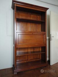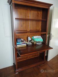 Libreria scrittoio in noce, di ottima fattura adatto ad ambienti piccoli o con problemi di spazio.