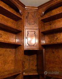 Libreria scrivania angllare in radica di noce
