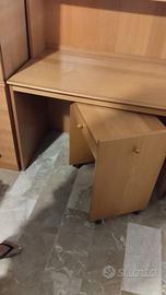 Libreria scrivania in legno (non truciolato)con tanto di carrellino estraibile poggia pc o altro con cassetto