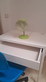 vendo una libreria, una Scrivania, una sedia e una Lampada in ottimo stato. Come si evince dalle immagini solo la scrivania ha una piccola parte con un po di pittura staccata, rimediabile anche con uniposca bianco.