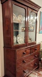 Libreria secretaire in mogano, antico vittoriano, robusta ed elegante, cm 122 x 48,5, h 207.