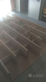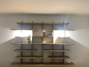 libreria sospesa con misura lunghezza totale 310 prof.18/33 h 220. Tutto costruito in abete vecchio di recupero a 3 strati in modo che non si incurvi nel tempo e abbia una stabilità duratura nel tempo, no schienale posteriore, composto interno in multistrato di pioppo ed esterno con cartelle da 6/7 mm di abete vecchio ambo i lati per arrivare ad uno spessore finito di 3 cm. Disposta con 5 fianchi verticali (senza interruzioni) in varie lunghezze con profondità 18 cm in cui nella parte superiore e inferiore verrà scavato internamente per poter inserire posteriormente attaccaglie liku nascoste per poterla tenere sospesa regolabili e VERRà INSERITO NEI VARI PUNTI SPINE DI LEGNO DIAMETRO CIRCA 12mm PER POTER INSERIRE SUCCESSIVAMENTE LE MENSOLE ORIZZONTALI dii varie misure e lunghezze spizzati alle estremità, bordati in massello CON PROFONDITà 33 CM VERRANNO SCAVATI PER 18 CM IN CUI SI RICAVERà UNA SPECIE DI FRESATA FEMMINA DOVE LE SPINE IN LEGNO SEVIRANNO COME DA GUIDA e SUCCESSIVAMENTE VERRà FORNITE LE VARIE DIME PER POTER FORARE IL MURO E INSEIRE LE BAIONETTE REGOLABILI ECCENTRICHE IN CUI I RIPIANI ORIZZONTALI SI INFILERANNO E SE INSERISCO TRA SPINE IN LEGNO E BAIONETTA NEL MURO (PER I RIPIANI CON SPORGENZA IN SOSPENSIONE DI ALMENO 20/25 CM taglio alle estremità di 30°. Il tutto verrà spazzolato e carteggiato in modo che sia morbido al tatto. Finitura cerata neutra trasparente. la libreria è già stata costruita su commissione ed esigenze del cliente, non è disponibile a magazzino ma essendo i diretti produttori falegnami possiamo riprodurlo uguale o in base alle proprie esigenze. per domande o dubbi contattateci P.S. disponibili a dare suggerimenti o chiarimenti in merito, per noi conta dare vita al vostro sogno DIRETTAMENTE DAL PRODUTTORE ASTENERSI RIVENDITORI O COMMERCIANTI